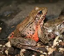 Under the Forest and Range Practices Act, the coastal tailed frog, northern red-legged frog, and Pacific water shrew are considered 'species at risk' and are all found in the park.[11] Both the coastal tailed frog and the northern red-legged frog can be found in shaded small, slow streams. Their habitats are regularly disturbed by forest harvesting and road construction. The Pacific water shrew can be found in forests along slow-moving streams however the species is endangered and considered extremely rare. This shrew species is affected by any disturbances in its wetland habitat.[11] Under the Conservation Status Rank List of British Columbia, the northern red-legged frog is on the Blue List (species of special concern), the coastal tailed frog is on the Yellow List (least risk of being lost), and the Pacific water shrew is on the Red List (risk of being lost).[12][13]