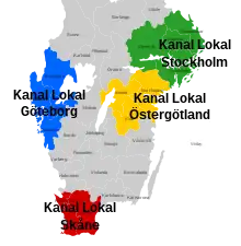 • Kanal Lokal Östergötland, broadcasting to Östergötland via the Motala, Linköping and Norrköping transmitters.
