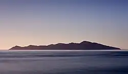 Kapiti Island ([kɑːpiti]), sometimes written as Kāpiti Island,[1] is an island nature reserve located 5.6 km (3 mi) off the west coast of the lower North Island of New Zealand and within the Kāpiti Coast District. Parts of the island were previously farmed, but it is now a predator-free sanctuary for endemic birds, including many endangered birds. The island is 10 km (6.2 mi) long, running southwest/northeast, and roughly 2 km (1.2 mi) wide, being more or less rectangular in shape, and has an area of 19.65 km2 (7.59 sq mi).