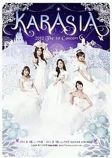 Karasia are a series of concert tours by South Korean girl group Kara. The first concert tour titled Karasia began in Seoul, South Korea in February 2012,[1] and continued with 12 shows in Japan starting in Yokohama in April.[2] The tour was also planned to have dates in China, Hong Kong, Taiwan, Thailand, Singapore, Indonesia and others, but this never came to fruition.[3]