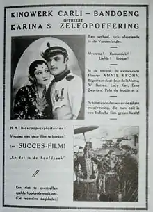 Karina's Zelfopoffering was directed by Ph. Carli, who had been trained as a documentary filmmaker and had made his feature film debut two years earlier with De Stem des Bloeds. It starred his wife, Annie Krohn.[1] Production was handled by Carli's Bandung-based company, Kinowerk Carli.[1]