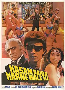 Kasam Paida Karne Wale Ki (transl. I Swear by My Father) is a 1984 Indian Hindi-language masala film produced and directed by Babbar Subhash, starring Mithun Chakraborty (in double role), Smita Patil, Salma Agha, Karan Razdan, Geeta Siddharth and Amrish Puri. It was remade in Tamil as Mangamma Sabadham (1985).[1]