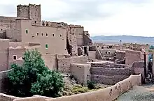 According to oral traditions, the kasbah was first built in the 17th century by the Imzwarn, a powerful local family.[1] More certainly, however, the kasbah was taken over and expanded by the Glaoui family in the 19th century.[2][1] At the height of its importance in the late 19th century, the kasbah controlled an important location at the confluence of several river valleys – including the Draa and the Dadès – which were part of the Saharan trade routes.[1] One of the members of the Glaoui family, Thami El Glaoui, was famously the pasha of Marrakesh during the entirety of French colonial rule over Morocco in the 20th century.[3][4]