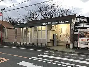 Kashii-Jingū Station (香椎神宮駅, Kashii-Jingū-eki) is a railway station on the Kashii Line operated by JR Kyushu in Higashi-ku, Fukuoka Prefecture, Japan.[1]