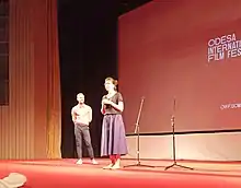 Kateryna Gornostai presents her film Stop-Zemlia at the 12th Odesa International Film Festival