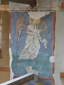On the opposite apse (a sacristy), John the Baptist’s lifeline is shown. The story is finished with the scenes of his martyrdom and the three findings of his head. Some part of the scene showing Herod's feast is preserved, and the figure of seated Herodias while presented the severed head of the Prophet. Below, one of the 3 findings of the head is shown - the picture of a digging boy's head is preserved. The saint deacons are painted on the entrance arc of the apse.