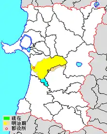 With the establishment of the municipality system on April 1, 1889, Kawabe District, with 14 villages was established. Ushijima and Araya were raised to town status in 1896, but Ushijima was annexed by the city of Akita in 1924. Wada was raised to town status in 1935, but Araya was absorbed into the city of Akita in 1941. On April 1, 1948 - Kawabe District acquired the village of Taishodera (from Yuri District).