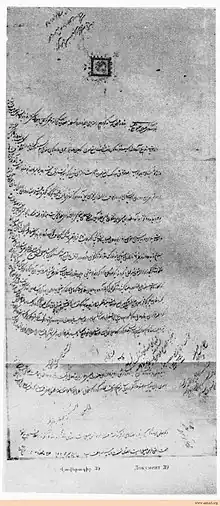 Petition in Persian by the Armenian patriarch to Shah Abbas II in which governor Kaykhosrow Khan is also mentioned by name. Dated 1650