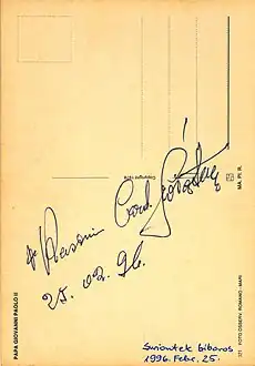 Card.Kazimierz Świątek's autograph signed in Esztergom, Hungary (25 February 1996)