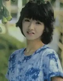 ![]() Kazumi Kawai in 1983 on the cover of her photobook Kawaii, Kaniza no Onna no Ko. | |