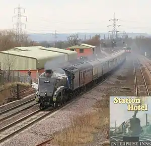 ![]() Ex-LNER Class A4 No. 60007 Sir Nigel Gresley, passing through the remains of Kegworth station on 28 February 2009 | |