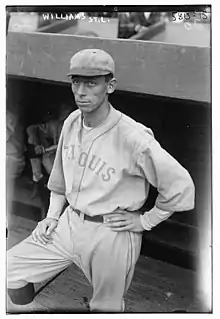 Williams began his professional baseball career in 1913 at the age of 23, playing for the Regina Red Sox of the Western Canada League.[3] In 1914, he played for the Edmonton Eskimos before moving to the Spokane Indians in 1915.[3] After posting a .340 batting average in 79 games for the Indians, he made his major league debut with the Cincinnati Reds on July 14, 1915.[1] He hit for a .242 average in 71 games for the Reds during the peak of the dead-ball era when only 6 players in the league hit above the .300 mark.[4] He played in only 10 games for the Reds in 1916, spending most of the season with Spokane and with the Portland Beavers of the Pacific Coast League.[1][3] Williams hit 24 home runs along with a .313 batting average for Portland in 1917 before being purchased by the St. Louis Browns.[3]
