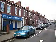 Entrances to the Kenilworth Stand and the Oak Road End, seen in 2006. The latter entrance, built into a row of houses, is often considered unusual[36]