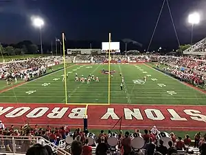 Seawolves Stadium opened on September 14, 2002, as the Stony Brook Seawolves football team faced the St. John's Red Storm in Stony Brook's first game as a Division I program.[14] Stony Brook won 34–9, and the opening kickoff was returned for a touchdown by the Seawolves.[15] At the time of its opening, the 8,136-seat stadium was the largest in Suffolk County, a record that is still held today.[16]