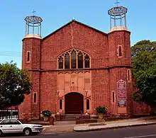 The hill that dominates West Kensington is occupied by the Sacred Heart Monastery, the Australian headquarters of the Catholic Missionaries of the Sacred Heart.[10] The monastery was designed by Sheerin & Hennessy and built in 1895. It is a large stone building in the Gothic style and features an attic storey and a prominent central tower. It also includes a brick chapel in a Romanesque-Byzantine style which was designed by Mullane and built in 1939, and which is joined to the monastery by a matching brick cloister. The monastery is a prominent landmark which can be seen from various parts of Kensington and is now listed on the Register of the National Estate.[11] In the mid-twentieth century, the monastery was the home of the anti-Communist organiser Dr P.J. ('Paddy') Ryan, the popular Catholic controversialist Dr Leslie Rumble,[12] the former athlete Jim Carlton, the retired missionary Francis Xavier Gsell and the editor Fr Paul Stenhouse. The monastery published the long-running magazine Annals Australasia.