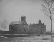 An image of Sampson Hall and the building which preceded Bearce Hall. Taken between 1860 and 1873.