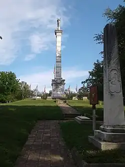 The monument was erected to stand over the graves of 17 Kentucky soldiers who had fallen at the Battle of Buena Vista. Their interment in Frankfort Cemetery on July 20, 1847, was marked by a eulogy from John C. Breckinridge, a supporter of the war. According to a popular story, this mass funeral inspired Mexican-War veteran, Theordore O'Hara, to pen his famed poem, "Bivouac of the Dead". However, O'Hara was still with the army in Mexico in July 1848.[3]