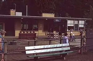 Kerkrade Centrum is a railway station in Kerkrade, Netherlands. The station was built in 1933 on the Schaesberg–Simpelveld railway and is the eastern terminus of the Heuvellandlijn (Maastricht–Kerkrade). However, as the Dutch Railways deemed it unprofitable at the time, the station did not see passenger services[1] until 15 May 1949, when regular passenger services finally commenced on the Schaesberg–Simpelveld railway.[2] Train services were operated by Veolia until 11 December 2016, when Arriva took over.[3]
