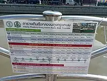 The Khlong Phadung Krung Kasem boat service operates an 4 kilometre route on the Khlong Phadung Krung Kasem in Bangkok. The service was introduced in 2016 as part of the revitalisation program of Khlong Phadung Krung Kasem and to alleviate road traffic in the inner city area. It was the first boat service in Bangkok that operated with electric boats and initially operated with only 4 boats, each with a capacity of 12 seats, which ran from Hua Lamphong to Thewarat Market. This was later increased to 7 boats on the route. The service was suspended following the outbreak of COVID-19 in Thailand in 2020 and there was much debate on the economic value of reopening the route. On 15 March 2023, the boat service reopened with 8 boats, following redevelopment plans along the canal.[1] The service is currently operated by Krungthep Thanakom PCL, which is currently cooperating with King Mongkut's University of Technology Thonburi on the development of electric boats, seen as an effective way of reducing noise and pollution in the city.[2]