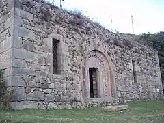 Khndzoresk is widely famous for its canyon with picturesque rock formations and ancient cave settlement. The artificial caves, some of which are currently used as stables and warehouses, used to be inhabited till the 1950s. In the bottom of the gorge there is St. Hripsime church, dating back to the 17th century. On a spur beyond on the right side of the gorge there is Anapat (hermitage) with the tomb of Mkhitar Sparapet. The cave church of St. Tatevos can also be found nearby.[3]