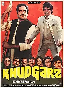 Khudgarz (transl.Selfish) is a 1987 Indian Hindi-language action drama film, produced and directed by Rakesh Roshan under the Film Kraft banner. It features an ensemble cast of Jeetendra, Shatrughan Sinha, Govinda, Bhanupriya, Amrita Singh and Neelam Kothari with music composed by Rajesh Roshan. The film marks the directorial debut of actor Rakesh Roshan.[2] The movie was a silver jubilee hit on release.
