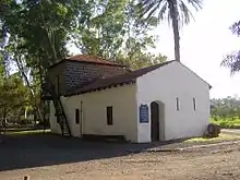 The Motor House (Beit HaMotor) was constructed in 1910 to house a water pump used to draw water for irrigation;[11] it was the first pumping station in what would become modern Israel.[12] The Motor House is located at the base of the hill, among Kinneret's orchards and fields, across the road from the Yardenit baptismal site.