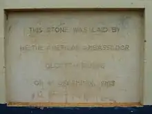 Photograph of the foundation stone taken in 2015 at the Kennedy Hall, Kigezi College Butobere (SINIYA).