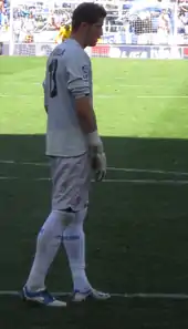Casilla made two appearances in the Champions League[26] and 17 in all competitions[27] during 2017–18, as Madrid won their third consecutive and 13th overall title in the tournament.[28] In the following campaign, after the summer signing of Chelsea's Thibaut Courtois, he was further demoted down the pecking order.[29]