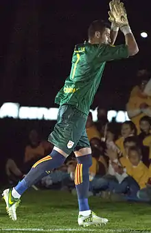 Barred by Kameni and new signing Cristian Álvarez, Casilla joined Segunda División B side Cádiz CF on loan for 2008–09.[9] The move was extended for the entirety of the following campaign after the Andalusians returned to division two, and he again started most of the season, but the team was immediately relegated.[10]