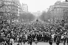 Oussekine's death sparked violent unrest in Paris. 30,000 protestors gathered outside of the hospital where he died, leading to a riot and clashes with police. A rally was also held outside of Paris' city hall and in the Latin Quarter, with both gatherings eventually leading to riots and skirmishing between police and demonstrators. 200,000 people took to the streets of Paris on 10 December, in a day of demonstrations in memory of Oussekine.[8]
