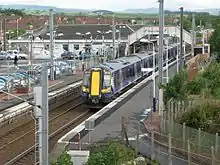![]() Overview of Kilwinning railway station. The Ayr platforms are on the right but the Largs/Ardrossan platforms are to the left. | |