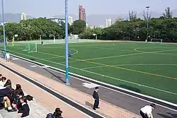 The field was reopened on 29 April 2014 after a HK$34 million renovation.[8] On the opening day, 575 students broke the Guinness World Record of 'Most Participants in a Beep Test', previously held by a college in Australia.[9][10] This is the second world record broken by the school, the other being 'Most People Planking Simultaneously' with 1,549 students on 16 December 2011.[11] In 2014, the field was rebuilt and to celebrate, the school went for the world record of Most People Participating in the Multi-Stage Fitness Test. A then-record of 575 beep test participants out of the 587 participants who started successfully completed the required number of intervals. This record was ratified by the Guinness World Records until it was broken by AFC Harrogate in 2017.[12]
