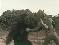 "Gorilla" battles the Toho superhero Greenman from an episode of the 1973 series Go! Greenman. "Gorilla" was portrayed by the King Kong suit from this film.