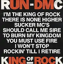 "King of Rock" is a 1985 single by Run–D.M.C. and the title track from their album of the same name. It was featured in the video games Guitar Hero: Aerosmith, Thrasher: Skate and Destroy, Call of Duty: Infinite Warfare, and is a downloadable track on Rock Band 3. The song was performed by the group at the 1985 Live Aid concert. Eddie Martinez is the song's lead guitarist and appears in the video.
