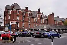 The hospital has its origins in a workhouse infirmary built in 1843.[2] A larger infirmary was built to the southwest of the workhouse in 1868 and a nurses' home was built to the north of the workhouse in 1897.[2] The infirmary was separated from the workhouse and was renamed the Kingston Infirmary in 1902.[2] It became the Kingston and District Hospital in 1920 and a larger nurses' home was opened by the Duchess of York in 1928.[2] The hospital joined the National Health Service in 1948 and began to redevelop the site the following year.[2]