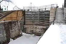 Lock 47 at Kingston Mills. This is one of the three lower locks. The upper lock gate is shown
