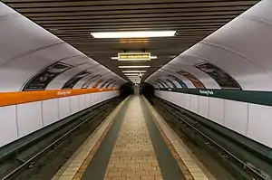 It was opened in 1896 and comprehensively modernised in 1977–1980. The station retains its original island platform configuration.