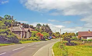 A station master's house was provided.[3] In 1908 the station is shown as having a passing loop, a single platform, two sidings, a weighing machine, a ticket office and waiting room, all sitting within a cutting.[4]