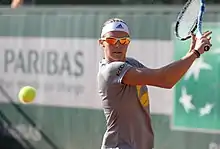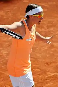 During the clay-court season Flipkens was plagued by a wrist injury, and only managed to win a single match, against Donna Vekić at the İstanbul Cup. At the French Open, she was eliminated by Alizé Cornet in the first round, winning only one game. In doubles, she and her partner Dominika Cibulková reached the second round, before they retired against fourth seeds Babos/Shvedova.[72][73] At the Mallorca Open, Flipkens stunned versus freshly crowned French Open champion and world No. 2, Garbiñe Muguruza, beating her in the first round in straight sets. She proceeded to reach semifinals but was beaten by the eventual tournament winner, Caroline Garcia. Flipkens also reached the semifinals in doubles, partnered with Ana Ivanovic.[74] At Wimbledon, Flipkens reached the second round, in which she lost to ninth seed Madison Keys.[75]