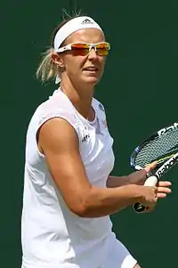 At the French Open, she defeated Ayumi Morita in the first round, 6–1, 6–4, before Maria Sharapova defeated her in straight sets in the second. In the week before Wimbledon, she reached semifinals of the Rosmalen Championships but lost to Andrea Petkovic.[26] At Wimbledon, she lost in the second round to Yanina Wickmayer. At the US Open, she failed to repeat her third-round appearance of the previous year, losing in the first round to Patty Schnyder. By the end of the year, she reached two International-level quarterfinals, at the Korea Open and Luxembourg Open. She had been troubled by a recurring wrist injury and underwent surgery at the end of the 2010 season.[27]