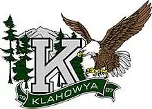 The school was named for the Chinook Jargon word "klahowya", which means "welcome".[3] It was planned in the 1990s and opened in 1997. Originally scheduled to open in 1996, it was delayed for another year.[4] Serving grades 6-12 (after 2016), it was the third high school in Central Kitsap School District. The first senior class graduated in 1999.[5] In 2016, the school expanded to include sixth graders. Two years later, a new wing, auxilary gymnasium, 13 classrooms, three laboratories, a fitness room and a second music room were opened as part of a 45,300 square feet (4,210 m2) addition. A new track and field stadium was also added.[6] On March 13, 2020, Klahowya remained closed due to the COVID-19 pandemic.[7]