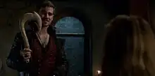 Hook arrived to confront Ahab, the current possessor of Maui's fish hook. However, Ahab starts taunting Hook, and rather than fighting, Hook and Ahab decided on a dice game with the winner getting the Jolly Roger and keeping the fish hook. Surprisingly enough, Hook wins the throw. But Ahab isn't convinced that Hook has returned to his swashbuckling ways, and as he follows Hook back to Rumple's cell the tensions between the two reach the point of taunting Hook for abandoning Alice. This leads to a gun duel between Hook and Ahab, and Hook again emerges as the winner, then runs off to return to Alice.