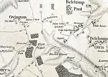 Knowl Green comprises houses, cottages, two farms with associated buildings, and the Cherry Tree public house. The Cherry Tree was recorded as such in 1933.[2] An arm of Belchamp Brook, a tributary of the River Stour, rises at the north of Knowl Green and flows by the hamlet.[3]