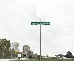 ![]() The intersection of Robert Koch Hospital Road and Koch Road in Oakville, Missouri. Near the previous site of Robert Koch Hospital. Photo taken in 2017. | |