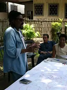 In 1992 he participates in Art Venture, a workshop organised by the cultural organisation Doual'art which produces a fresco: a triptych 4.5m long by 1.5m high in plexiglas installed in Dakar Square in Douala. In 1993 he is the artistic director of Doual'art Pop '93, a workshop organised by Doual'art in the neighbourhood of Madagascar in Douala in which 25 artists produced frescos on stockades of a building yard; in the same year he participates in Cadavres exquis at the Mbappé Leppé Stadium in Douala and he is committee member of the Festival National des Arts et de la Culture. In 1997 he participates in Le Kwatt, a workshop organised by Doual'art in the neighbourhood Makepe Petit-Pays in Douala and in 1998 in Entr'Artistes curated by Mariela Borello at Doual'art. In March 2007 he participates in the Ars et Urbis International Workshop and in December in the SUD-Salon Urbain de Douala.