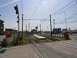 The Koshinokata Station (越ノ潟駅, Koshinokata Eki) is a city tram station located on the Shin-Minato Harbor Line in Imizu, Toyama Prefecture, Japan. This station is unmanned.