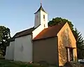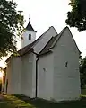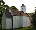 The Church of Saint George (Kostol svätého Juraja) is a simple one-nave church of pre-romanesque origin with later romanesque, baroque and modern extensions. It lies on the hill in the eastern part of the village. In 1960, the church acquired interest of experts after the discovery of medieval paintings and further research led to dating to the period before the second half of the 11th century.[1] Subsequently, the church had been referenced in literature for decades as an oldest remaining sacral building in Slovakia.[1] After breakthrough discoveries in Kopčany and revised dating of Church of St. Margaret of Antioch, a revised archeological and artistic research have been done also in Kostoľany pod Tribečom.