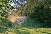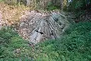 The basalt summit of the Kranstein has been exposed by a basalt quarry. After work started on northwestern side of the large quarry, basalt columns were found that leaned in on one another like logs in charcoal pile. This geological feature is like a section through a volcanic pipe.