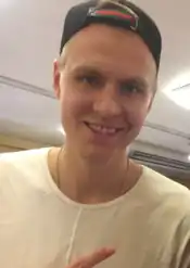 Porziņģis followed in his parents' footsteps and started to play basketball at age six.[3] Once he turned 12, his older brother, Jānis, who played professionally in Europe, took Porziņģis to offseason training sessions.[4] He played in youth competitions with BK Liepājas Lauvas, the most famous club based in his hometown of Liepāja, until age 15. An agent from Latvia sent video of Porziņģis around this time to teams in Spain and Italy.[3] In 2010, Baloncesto Sevilla, a club that had a professional team competing in the Liga ACB in Spain, called Porziņģis for a tryout in an attempt to recruit foreign talent to its junior squads. He stood 6 ft 8 in (2.03 m) and weighed 157 lb (71 kg) at this time.[3][5] Porziņģis recalled the moment and said, "I came here with my brother for two or three days, but it was really hot and I couldn't play at my best because of that. Still, I received a contract in summer 2010 and I signed it."[3] Inmaculada Avivar, a nutritionist for Sevilla, diagnosed that Porziņģis was suffering from anemia, meaning that he had fewer red blood cells.[6] This caused Porziņģis to feel fatigue, shortness of breath, and inability to exercise. Nevertheless, he gradually overcame the condition and began seeing improvement in his game.[3] In addition to his medical problems, Porziņģis had trouble picking up the language in Seville, making him reluctant to return there after his first tryout. In his first season playing for the junior squad, Porziņģis struggled to communicate with the coaching staff and his teammates and was often tired due to his health.[3]