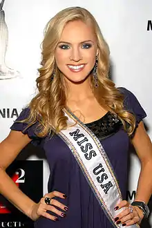 - ↑ Hennessey, Kathleen (April 19, 2009). "Miss North Carolina USA crowned Miss USA 2009". Las Vegas Sun. Associated Press. Retrieved August 12, 2023.